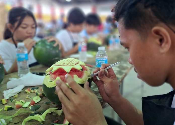 FRUIT CARVING COMPETITION—Students hurry to finish their entries as they participate in the fruit carving competition as part of this year’s edition of Pakwan Festival in Bani town last Sunday, February 1. Punchphoto by CESAR RAMIREZ