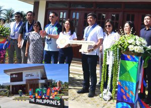 TOURIST REST AREA—Department of Tourism Secretary Christina Garcia-Frasco turns over the symbolic key to Pangasinan Gov.Ramon Guico III after they formally inaugurated the newly-constructed Tourist Rest Area (inset photo) at the Capitol Beach Park in Lingayen last Thursday, February 5. The building was constructed by the DOT through its attached agency, Tourism Infrastructure and Enterprise Zone Authority (TIEZA).Punchphoto by CESAR RAMIREZ
