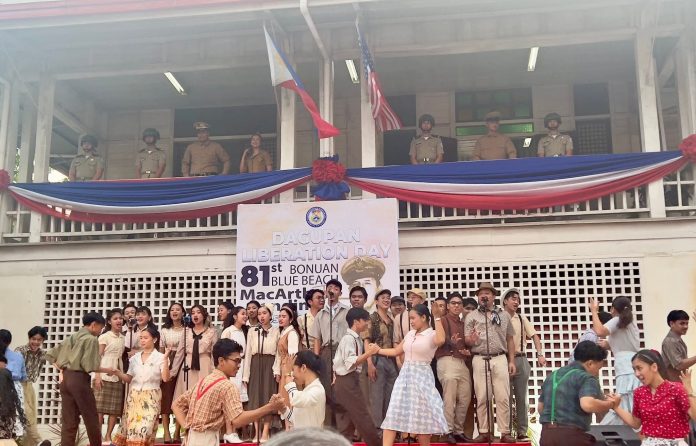 In a fanciful hour, Liberation Day took place all over again—as the University of Luzon’s Drum and Bugle Corps and Dance Theater Company along with the Universidad de Dagupan Koro—gaily dressed in the style of the time, breathed life into the nostalgic and heartwarming sounds and scenes of a bygone era resplendent with the joy of freedom.