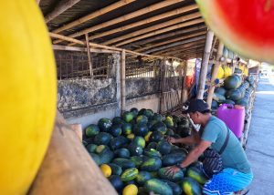 PAKWAN FESTIVAL—Thirty-six-year-old Jeypee Castil arranges the watermelon (pakwan) he is selling at his makeshift stall in Poblacion, Bani. The town of Bani, known for its sweet watermelons, is currently holding its annual Pakwan Festival, attracting tourists from various parts of Pangasinan. Punchphoto by CESAR RAMIREZ.