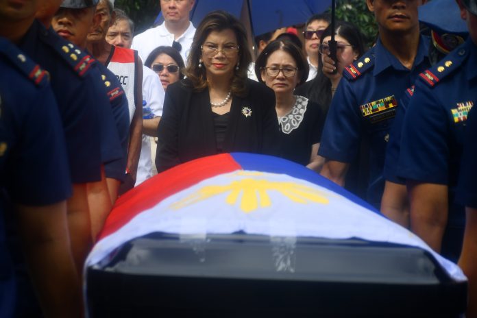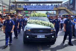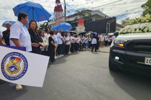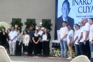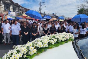 Dagupan City Vice Mayor Bryan Kua and members of the Sangguniang Panlungsod hand over a resolution of condolence to the bereaved De Venecia family during a neurological service in honor of five-time Speaker Jose de Venecia Jr. at the Dagupan City Plaza on February 18. Punchphoto by Willie Lomibao