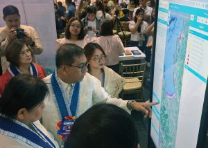 RSTW IN DAGUPAN—Science and Technology Secretary Renato Solidum shows to Dagupan City Mayor Belen Fernandez and other officials the geoharazard website prior to the opening of the three-day (February 16-18) 2026 Regional Science Technology and Innovation Week (RSTW) for Ilocos Region initiated by the DOST Region 1 held at the CSI Stadia in Dagupan City, Punchphoto by CESAR RAMIREZ